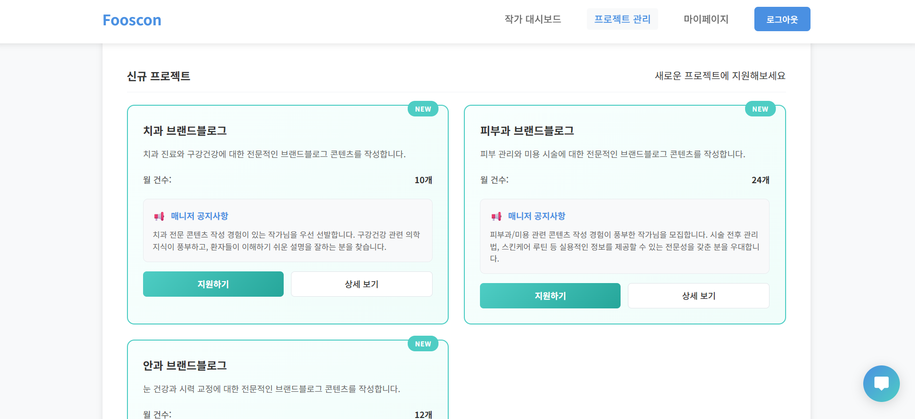 Fooscon은 여러 대행사와 전문 작가를 연결하는 중개 플랫폼입니다.
